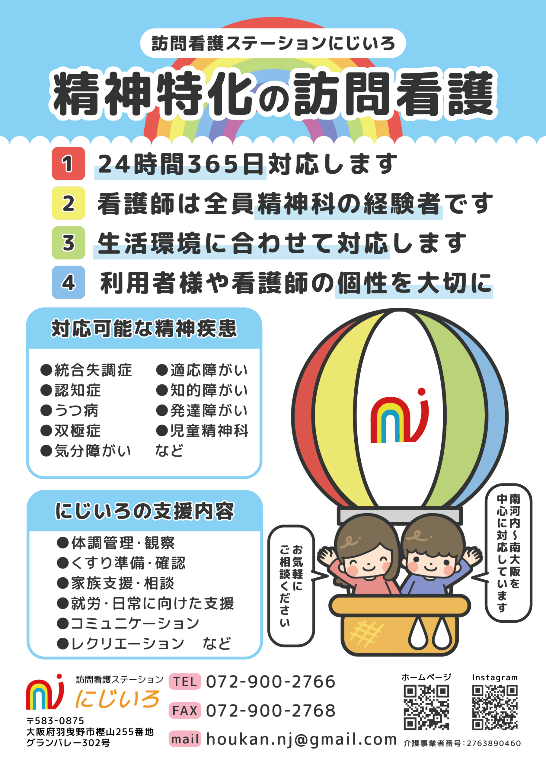 - 在籍看護師は全員、精神科病棟(1年以上)経験あり!